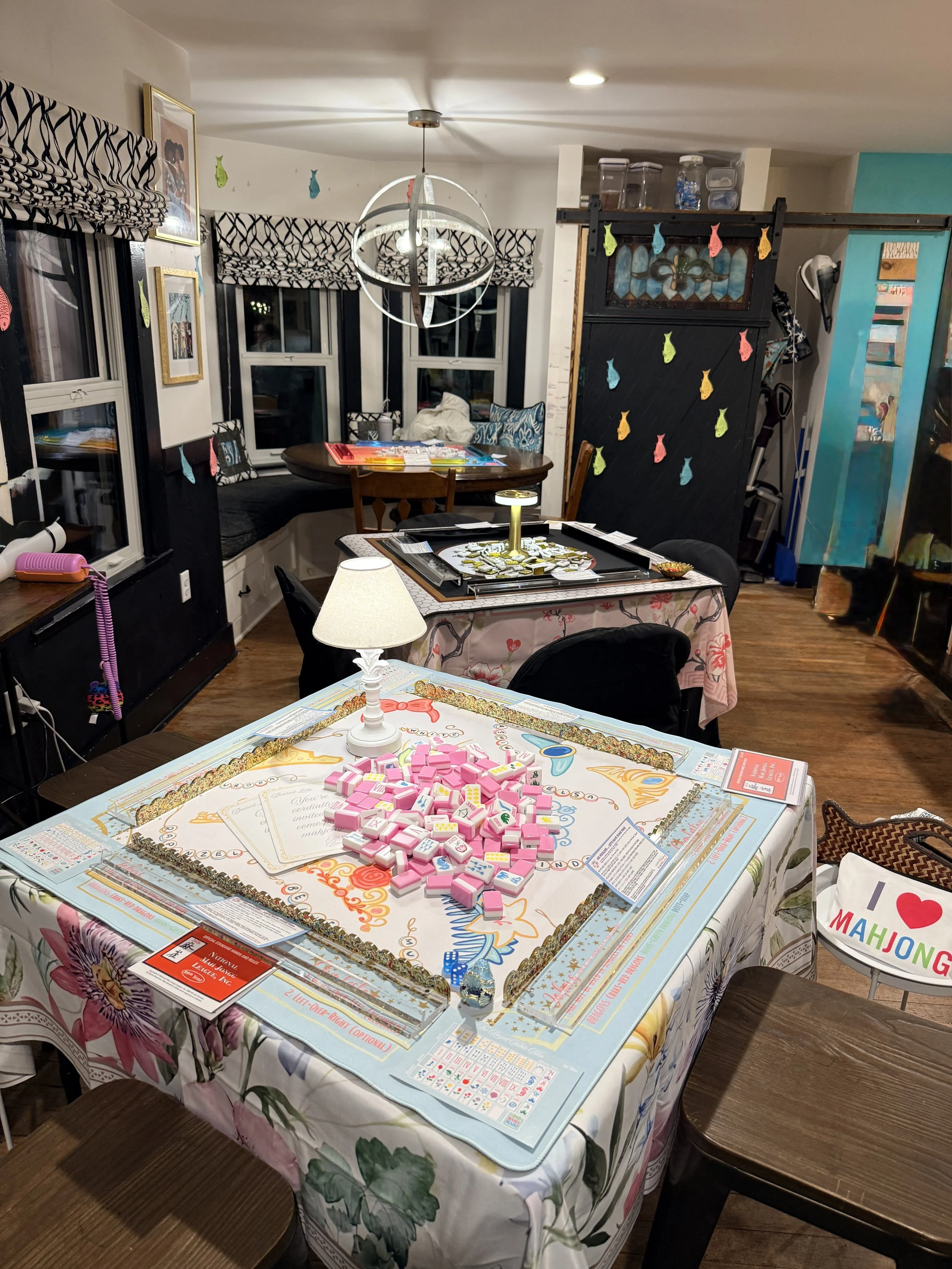 The Full Setup: We provide everything—premium Mahjong sets, racks, mats, and even tables and chairs (table and chairs can be provided for up to 12 players at this time).